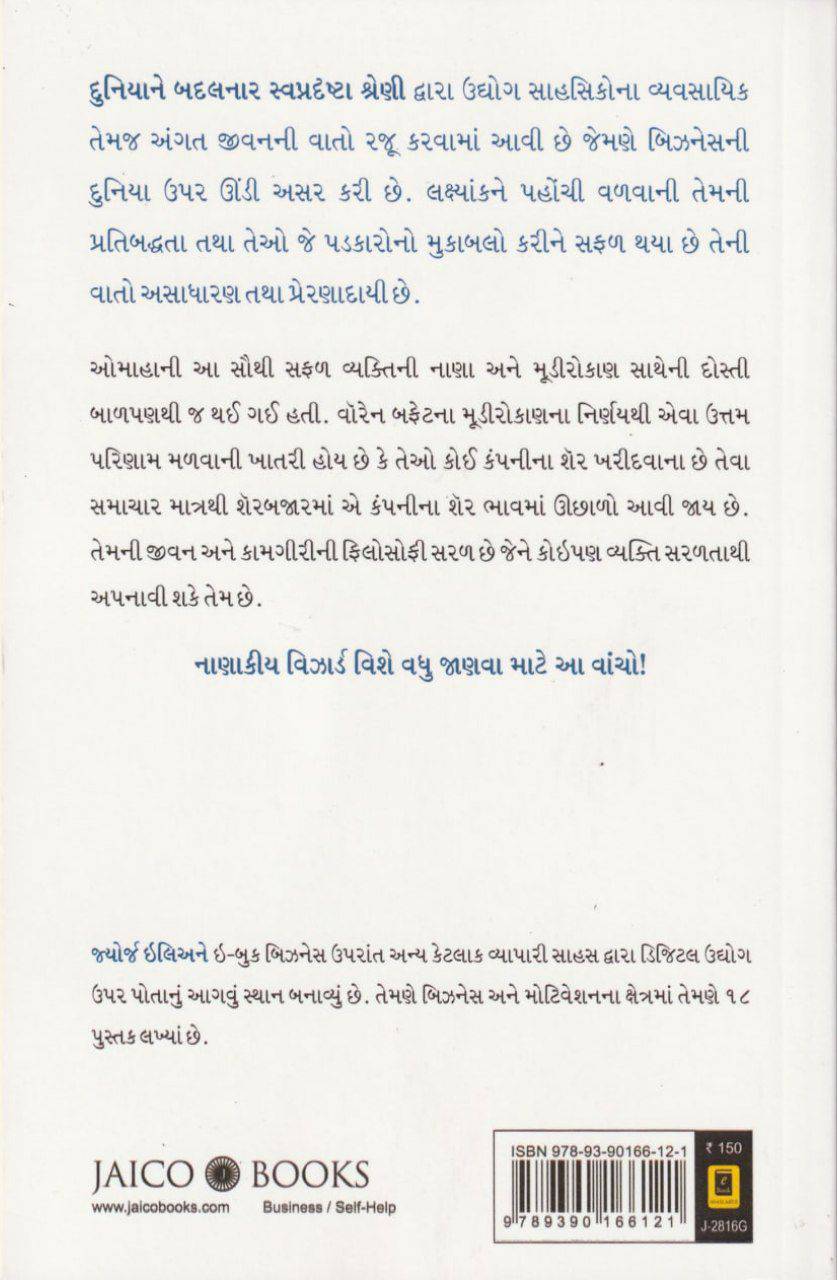 દુનિયાને બદલનાર સ્વપ્રદેષ્ટા શ્રેણી દ્વારા ઉદ્યોગ સાહસિકોના વ્યવસાયિક તેમજ અંગત જીવનની વાતો રજૂ કરવામાં આવી છે જેમણે બિઝનેસની દુનિયા ઉપર ઊંડી અસર કરી છે. લક્ષ્યાંકને પહોંચી વળવાની તેમની પ્રતિબદ્ધતા તથા તેઓ જે પડકારોનો મુકાબલો કરીને સફળ થયા છે તેની વાતો અસાધારણ તથા પ્રેરણાદાયી છે. ઓમાહાની આ સૌથી સફળ વ્યક્તિની નાણા અને મૂડીરોકાણ સાથેની દોસ્તી બાળપણથી જ થઈ ગઈ હતી. વૉરેન બફેટના મૂડીરોકાણના નિર્ણયથી એવા ઉત્તમ પરિણામ મળવાની ખાતરી હોય છે કે તેઓ કોઈ કંપનીના શેર ખરીદવાના છે તેવા સમાચાર માત્રથી શેરબજારમાં એ કંપનીના શેર ભાવમાં ઊછાળો આવી જાય છે. તેમની જીવન અને કામગીરીની ફિલોસોફી સરળ છે જેને કોઇપણ વ્યક્તિ સરળતાથી અપનાવી શકે તેમ છે. નાણાકીય વિઝાર્ડ વિશે વધુ જાણવા માટે આ વાંચો! ઈન્ડેક્સ જોવા માટે ટેલીગ્રામ ડાઉનલોડ હોવું જરૂરી છે આપેલ લિંક પર ક્લિક કરો https://t.openinapp.co/gcc-books-store-19
