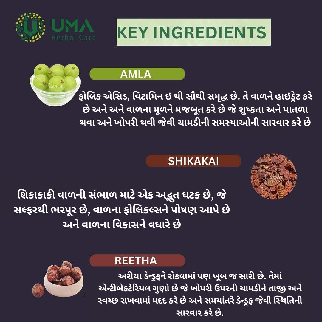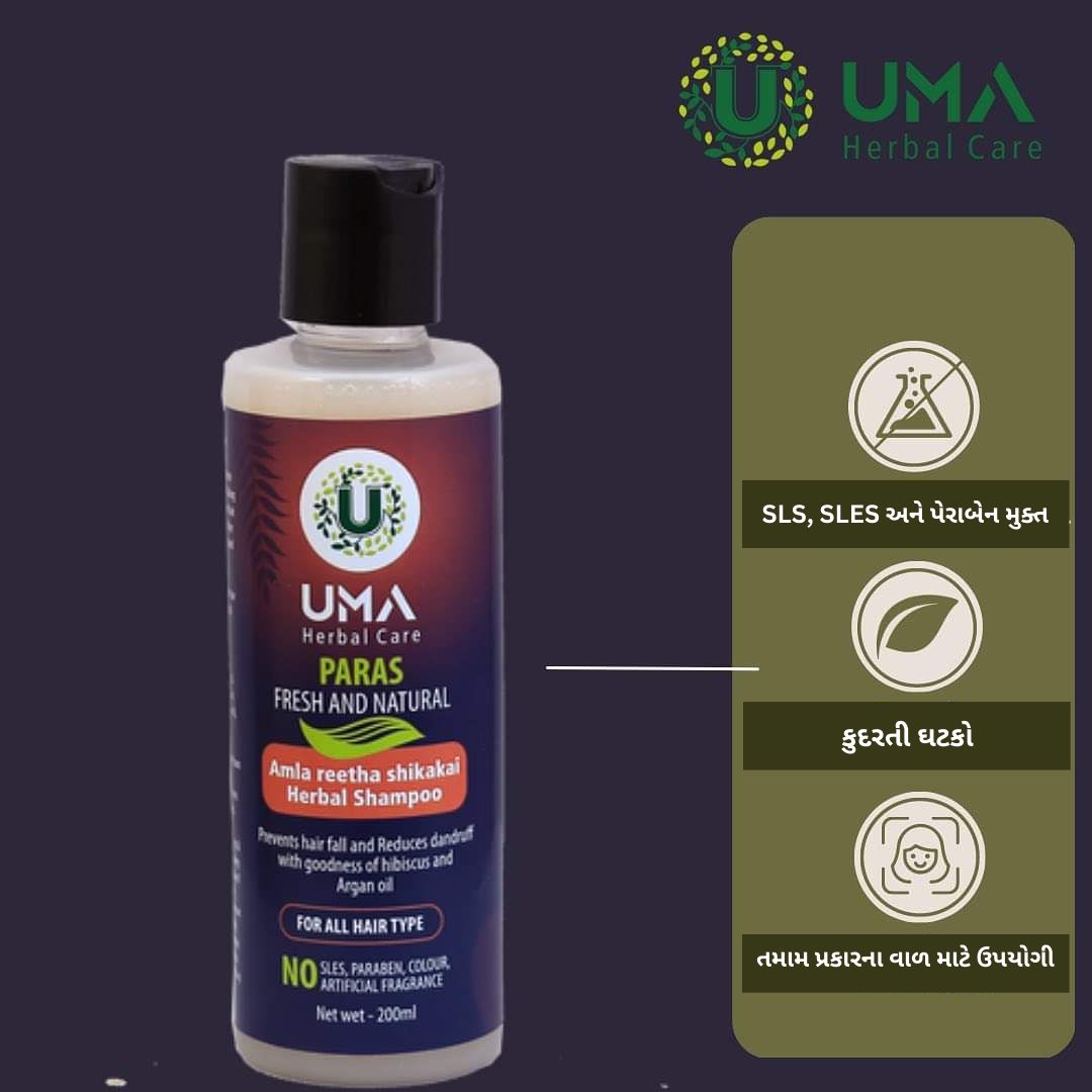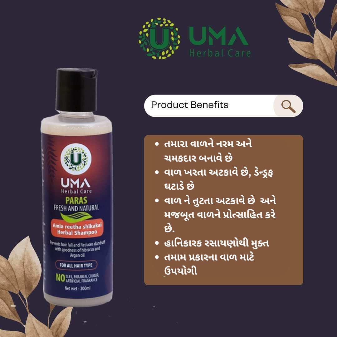 ઉમા હર્બલ શેમ્પૂ જે કેમિકલ મુક્ત છે .બજારમાં મળતા કેમિકલ યુક્ત અને વાળને નુકશાન કરનારા શેમ્પૂનો ઉપયોગ બંધ કરી આયુર્વેદિક અને હર્બલ શેમ્પૂ નો ઉપયોગ કરવો જોઈએ. આમળા,શિકાકાઈ અને અરીઠા જેવા આર્યુવેદિક ઘટકો દ્વારા બનાવેલ સેમ્પુ તમારા વાળને નરમ અને ચમકદાર બનાવે છે વાળ ખરતા અટકાવે છે, ડેન્ડ્રફ ઘટાડે છે વાળ ને તુટતા અટકાવે છે અને મજબૂત વાળને પ્રોત્સાહિત કરે છે. હાનિકારક રસાયણોથી મુક્ત શેમ્પૂ તમારા વાળ ને એકદમ સુરક્ષિત રાખે છે જે તમામ પ્રકારના વાળ માટે ઉપયોગી છે 🌱 વિશેષ ફાયદા: અમારુ પારસ આમળા અરીઠા શિકાકાઇ હર્બલ શેમ્પૂ તમારા વાળને નરમ અને ચમકદાર બનાવે છે, વાળ ખરતા અટકાવે છે, ડેન્ડ્રફ ઘટાડે છે, ખંજવાળ સામે લડે છે અને વાળને મજબૂત કરવા પ્રોત્સાહિત કરે છે. - દરેક માટે યોગ્ય: તે આયુર્વેદિક અને હર્બલ પ્રકૃતિ છે અને હાનિકારક રસાયણોથી મુક્ત છે, આ હર્બલ શેમ્પૂ દરેક માટે વાપરવા માટે સલામત છે 🌱 કેમિકલ મુક્ત: અમારું શેમ્પૂ ખનિજ તેલ, કૃત્રિમ સુગંધ, રંગો, સોડિયમ લૌરીલ સલ્ફેટ (SLS) ,સોડિયમ લોરેથ સલ્ફેટ (SLES), પેરાબીન અને ઘણા બઘા હાનિકારક કેમીકલથી મુકત 🌱 હર્બલ ઘટકો- આમલા અર્ક ,રીથા અર્ક ,શિકાકાઈ અર્ક, હિબિસ્કસ અર્ક, અસ્વાંગંધ, એલોવેરા, આર્ગન ઓઈલ, ઓલિવ ઓઈલ, બદામ ઓઈલ, ટી ટ્રી એસેન્શિયલ ઓઈલ, તલ ઓઈલ MRP 300 ઘરે બેઠા 250 (200 મિલી) ઓર્ડર માટે 95743 05710 પર ઓર્ડર કરી શકો છો.