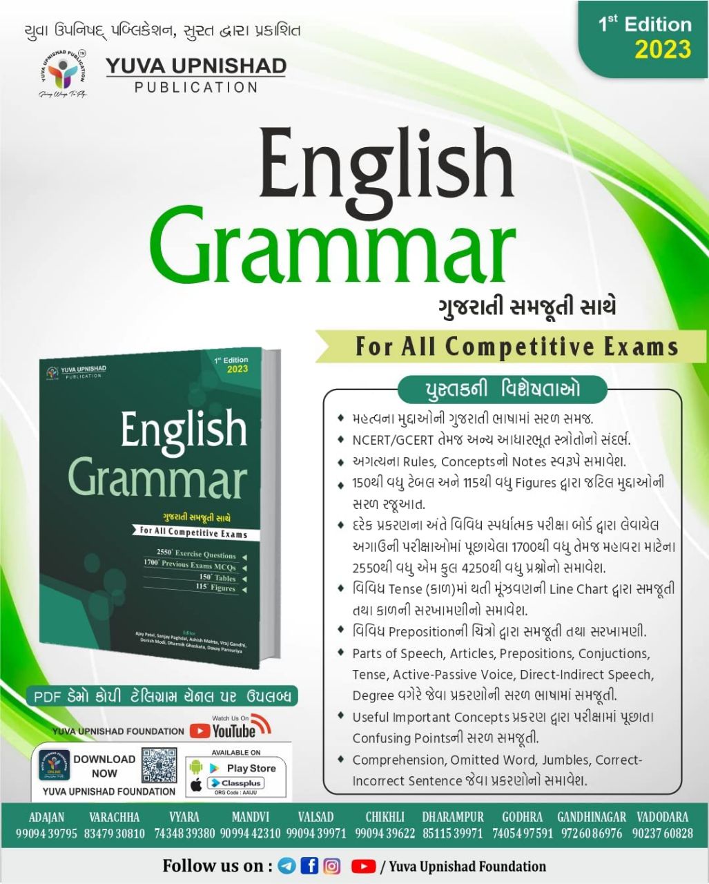 GCC BOOKS STORE: 📙યુવા ઉપનિષદ્ પબ્લિકેશન, સુરત દ્વારા પ્રકાશિત "English Grammar" પુસ્તકની પ્રથમ આવૃત્તિ-2023 MRP 490 Ghare બેઠાં 330 યુવા ઉપનિષદ કરતા પણ સસ્તા દરે ઈન્ડેક્સ જોવા માટે ટેલીગ્રામ લિંક ડાઉનલોડ હોવું જરૂરી છે આપેલ લિંક પર ક્લિક કરો અથવા લિંક ને ટેલીગ્રામ માં કોપી કરી ક્લિક કરો https://t.me/gccbooksstore/6883