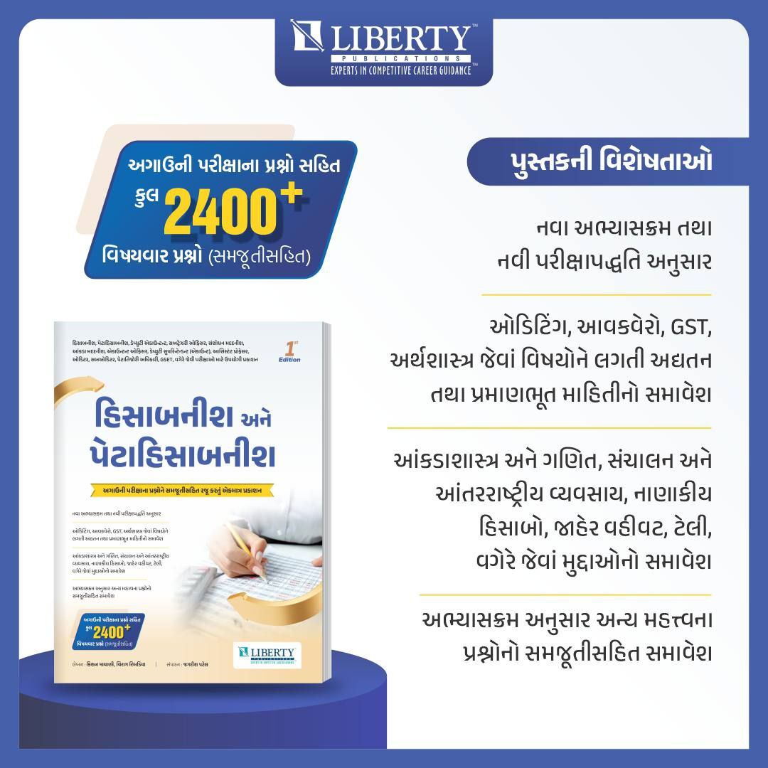 💥 હિસાબનીશ, પેટાહિસાબનીશ, ડેપ્યુટી એકાઉન્ટન્ટ, સબટ્રેઝરી ઓફિસર, સંશોધન મદદનીશ, આંકડા મદદનીશ, એકાઉન્ટન્ટ ઓફિસર, ડેપ્યુટી સુપરિન્ટેન્ડન્ટ (એકાઉન્ટ), આસિસ્ટંટ પ્રોફેસર, ઓડિટર, સબઓડિટર, પેટાતિજોરી અધિકારી, GSET, વગેરે જેવી પરીક્ષાઓ માટે ઉપયોગી પ્રકાશન