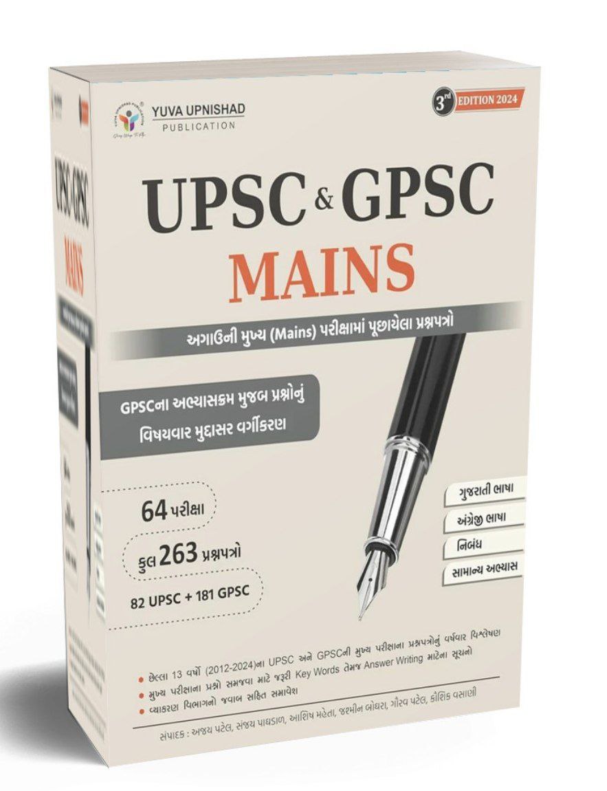 📚 યુવા ઉપનિષદ્ પબ્લિકેશન, સુરત દ્વારા પ્રકાશિત '' UPSC & GPSC MAINS " અગાઉની મુખ્ય(Mains) પરીક્ષામાં પૂછાયેલા પ્રશ્નપત્રોની તૃતીય આવૃત્તિ-2024