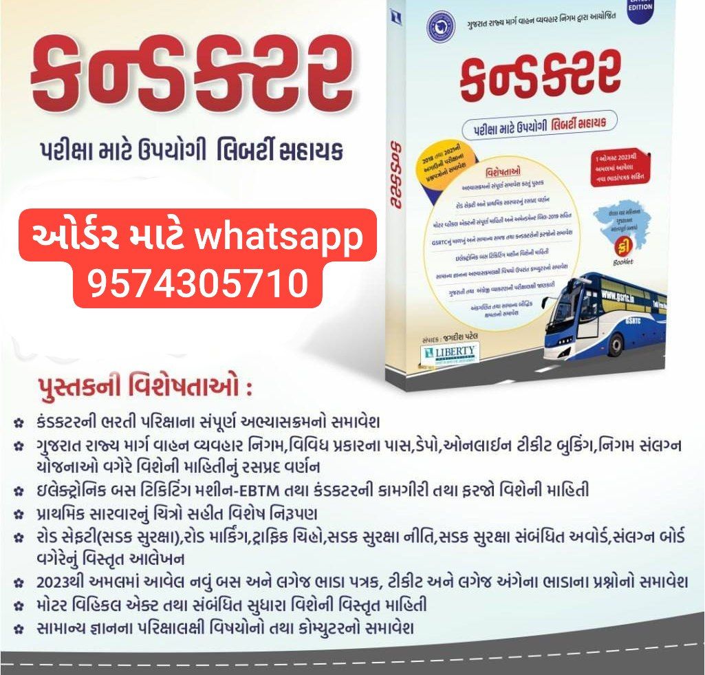 🎉લિબર્ટી પબ્લિકેશન્સ દ્વારા પ્રકાશિત કંડક્ટરની ભરતી પરીક્ષા માટે ઉપયોગી કન્ડક્ટર ગાઇડ પુસ્તકની ડેમો કોપી-2023 🎉