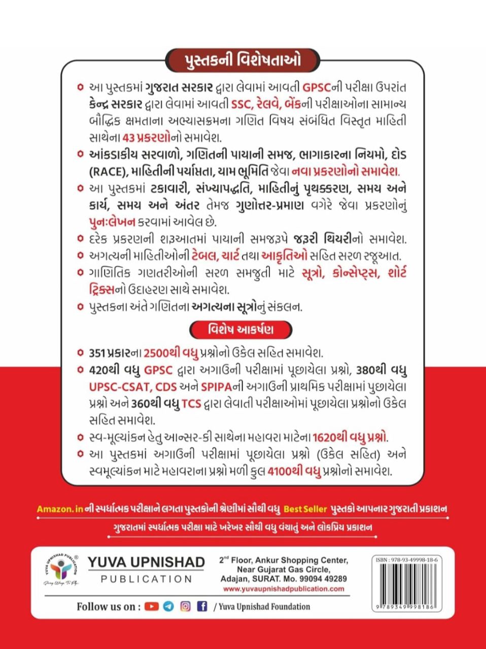 📔યુવા ઉપનિષદ્ પબ્લિકેશન, સુરત દ્વારા પ્રકાશિત કેન્દ્ર તથા રાજ્ય સરકાર ની વિવિધ સ્પર્ધાત્મક પરીક્ષાઓ માટે અત્યંત ઉપયોગી "ગણિત –વર્ગ 1/2 " પુસ્તક ની દ્વિતીય આવૃત્તિ 2026 પુસ્તક ની ડેમો કોપી.